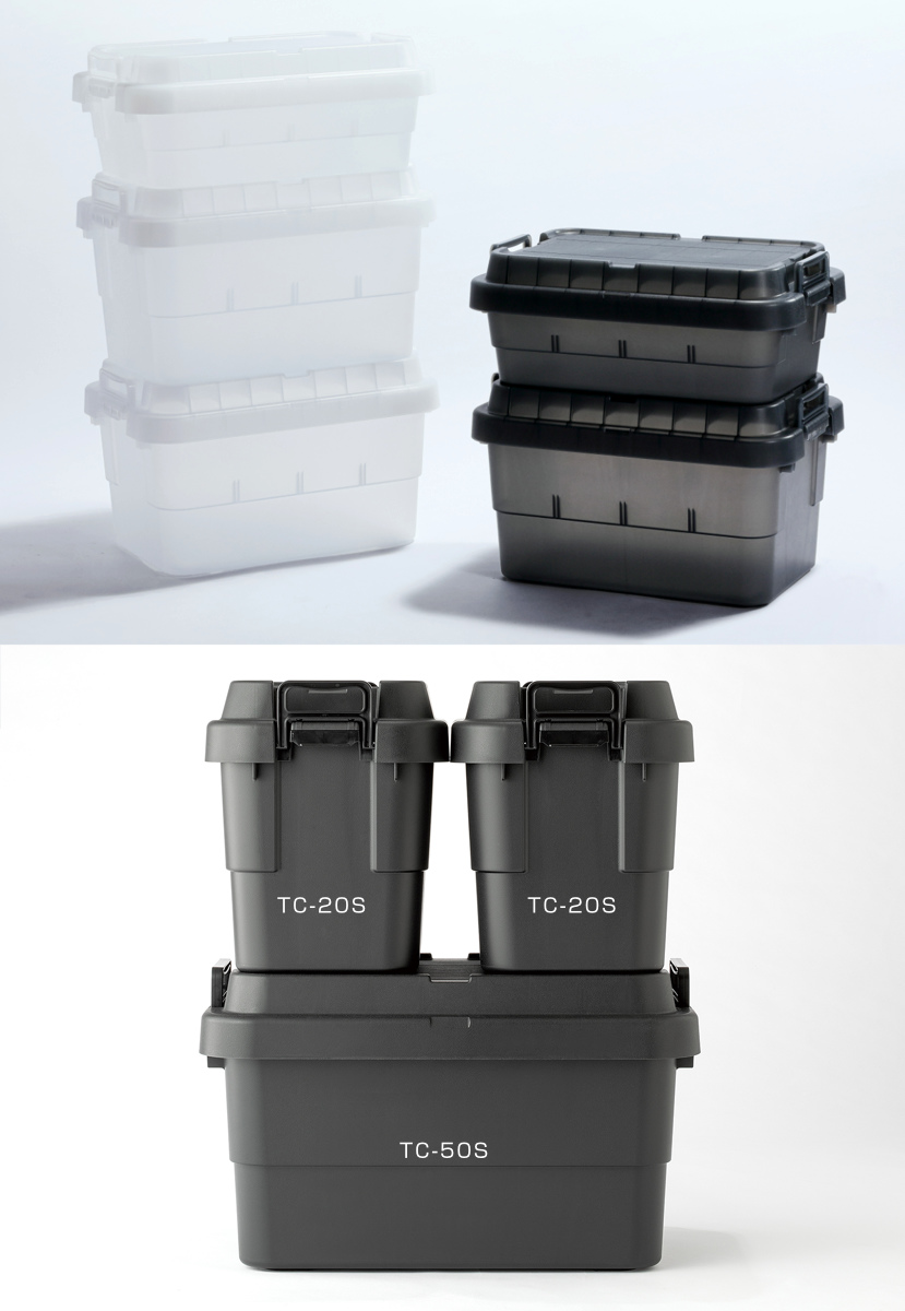 TC-50SとTC-50SLOWは、それぞれ積み重ねて使用できます。従来カラーのTC-20Sとも互換性があり、組み合わせて使うことが可能です。シーンに合わせてシリーズ商品と組み合わせることで、より快適な収納空間がつくれます。