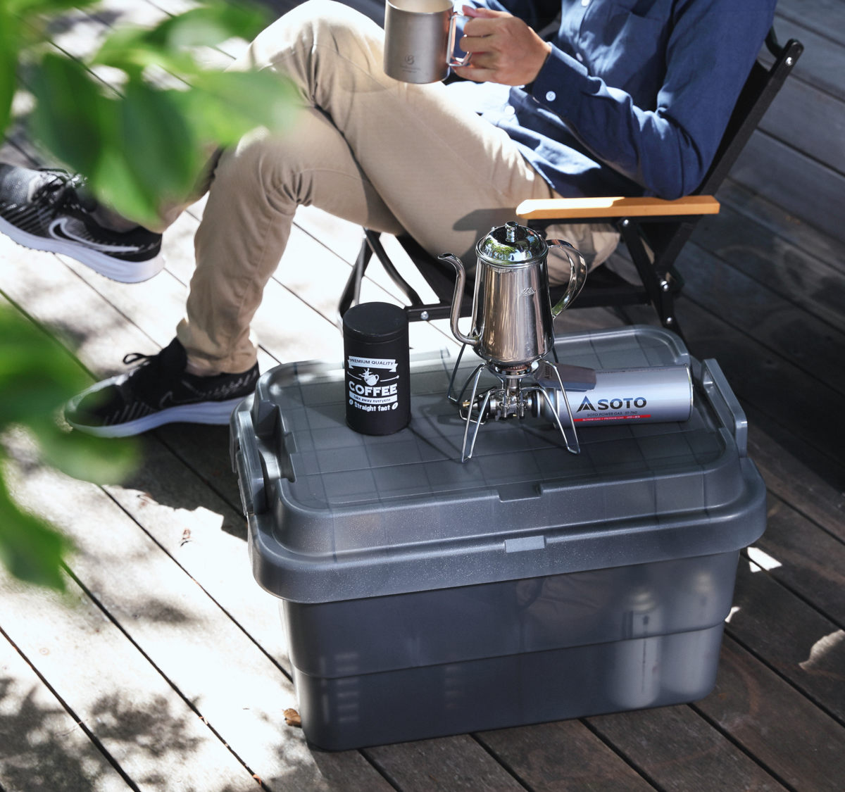 フタがフラットなので、アウトドアやキャンプ、災害時など、いざというときにはテーブルとしても使えます。
