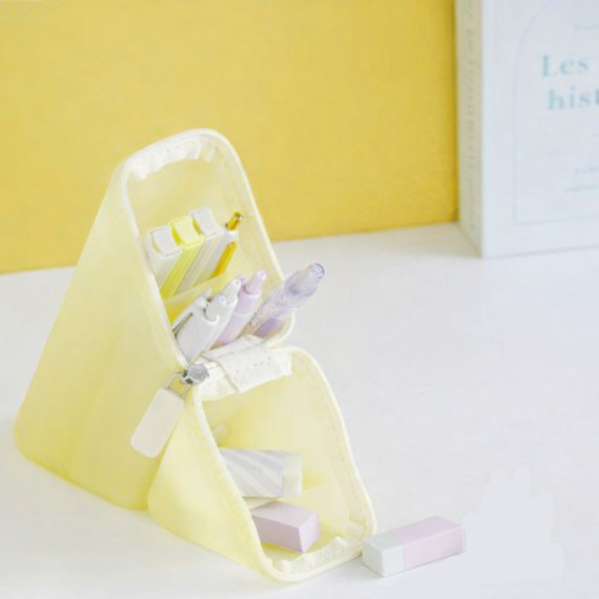 ケースは磁石で固定できる構造になっており、開くと三角形の形状で安定して自立します。机の上でしっかり立つため、ペンスタンドとして安心して使用できます。