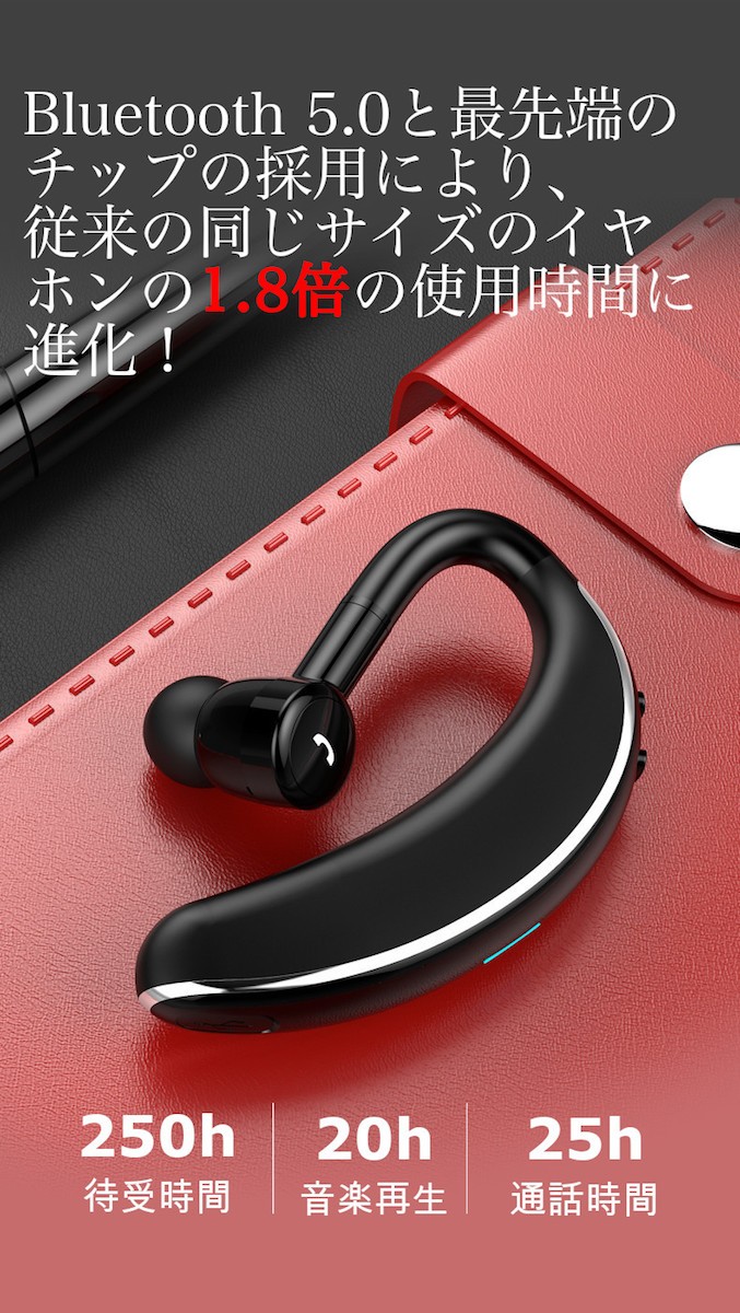 【長い使用時間】Bluetooth5.0チップの採用と大容量バッテリー搭載により、驚くほどの長時間使用が可能。音楽再生約20時間、通話約25時間、待受約25時間まで。【音楽・通話】ヘッドセット本体から、通話の各操作(着信を受ける・拒否・電話を切る・リダイヤルする)と音楽再生の各操作(再生・一時停止)ができます。ノイズキャンセル機能を搭載していることで、ノイズを抑制し、クリアな通話ができます。