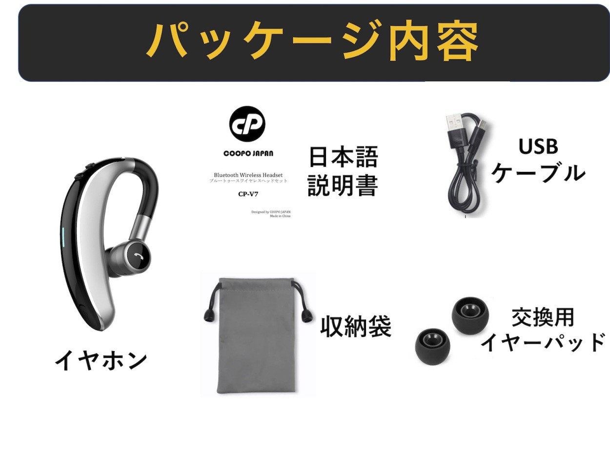 【Bluetooth 5.0】IPX5防水 ワイヤレスイヤホン 左右とも対応 連続20時間使用 日本語説明書 日本正規品 ヘッドホン 片耳専用 超軽量 超小型 高音質 マイク内蔵 ブルートゥース ヘッドセット iPhone Android スマホ 対応 送料無料 COOPO CP-V7