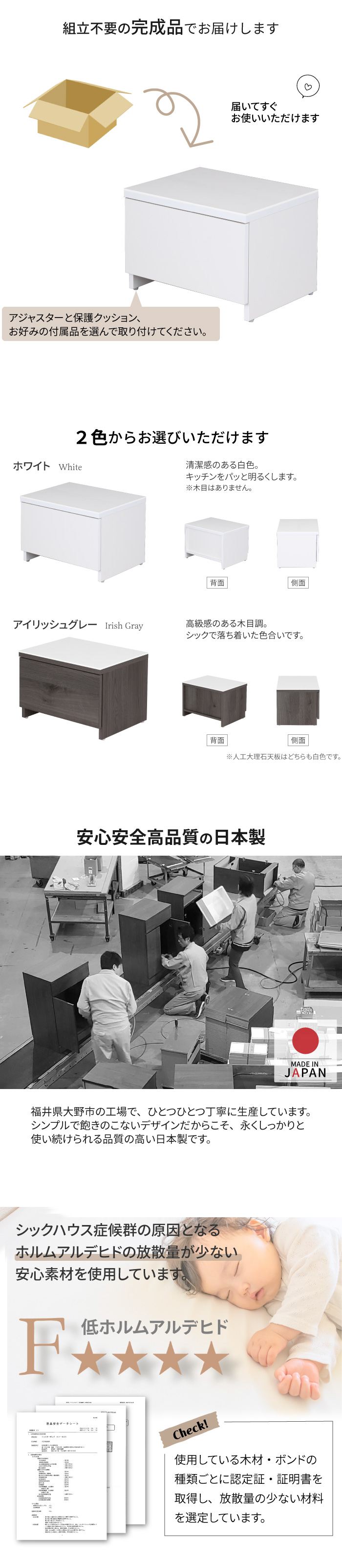 ・清潔感のあるホワイトと高級感あふれるアイリッシュグレーの2色