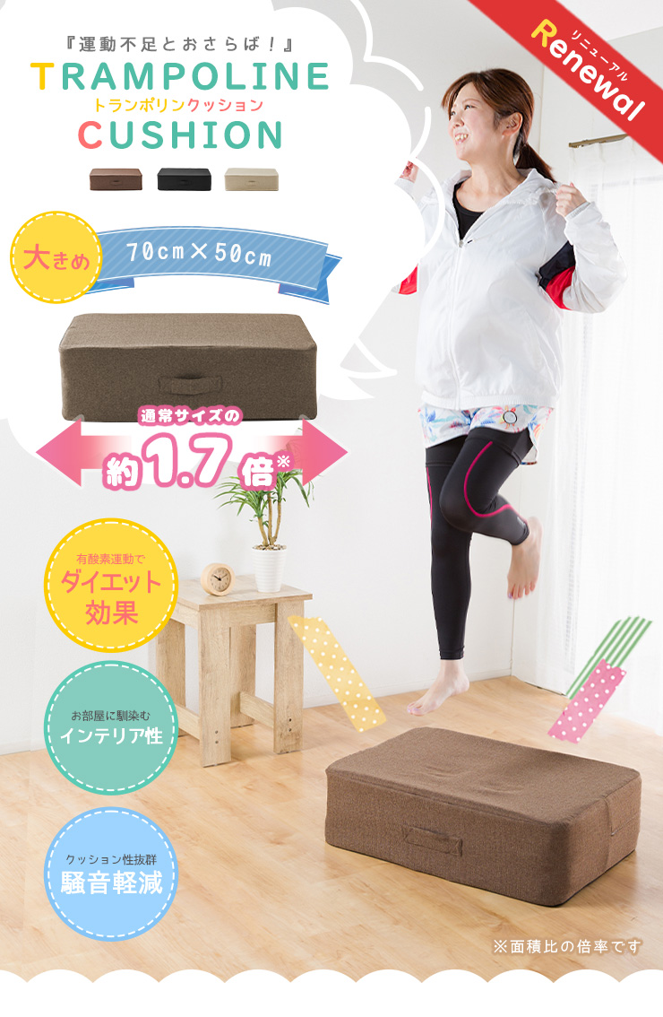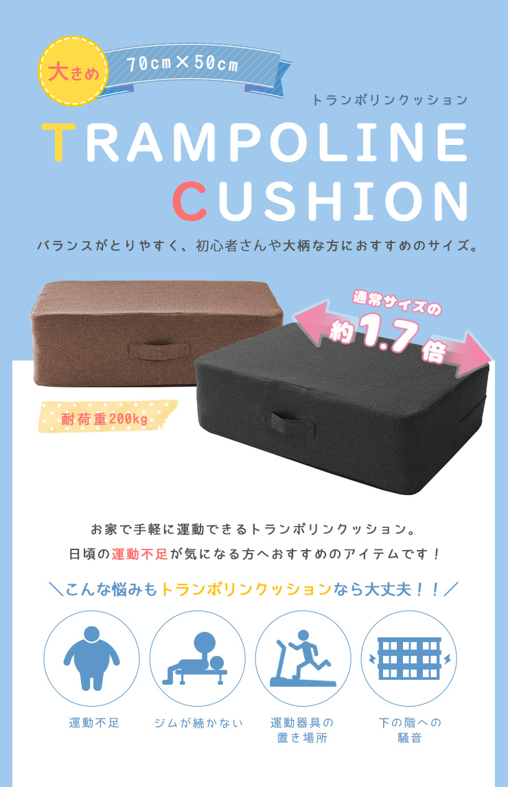 トランポリン クッション トレーニング エクササイズ 室内 運動 家庭用 幅70cm 大きめサイズ ダイエット 騒音防止 運動不足解消