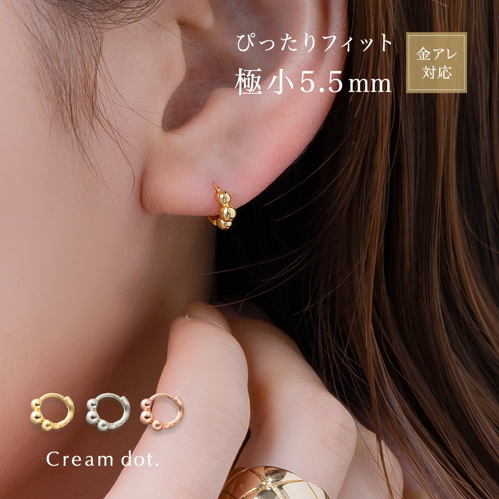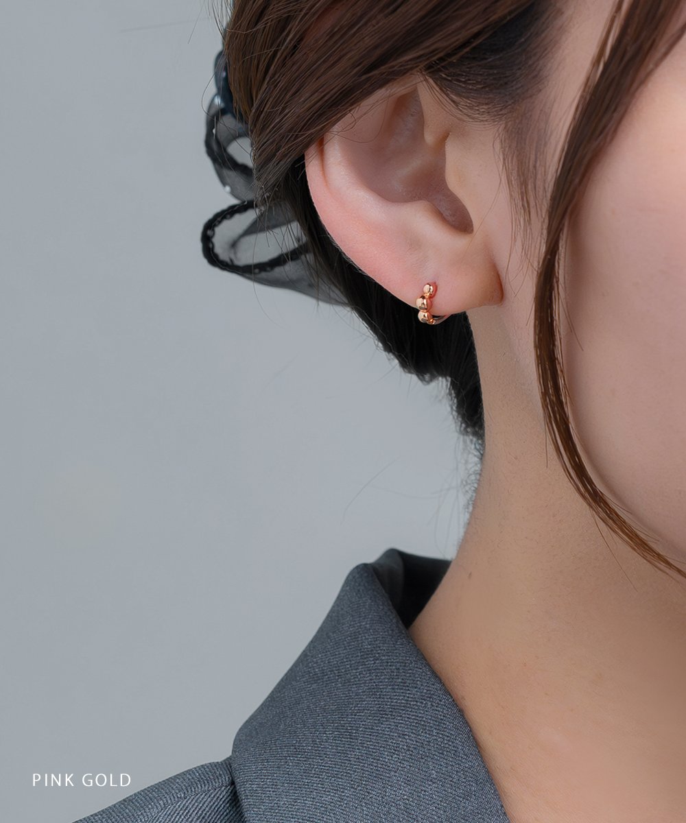 【金属アレルギー対応】極小5.5mm!メタルスフィアのキャッチレスフープピアス