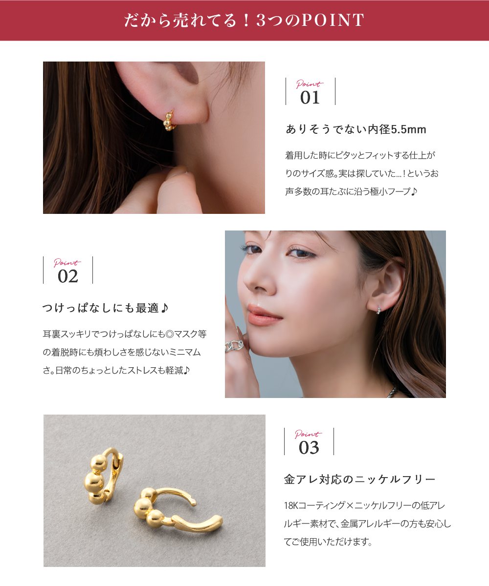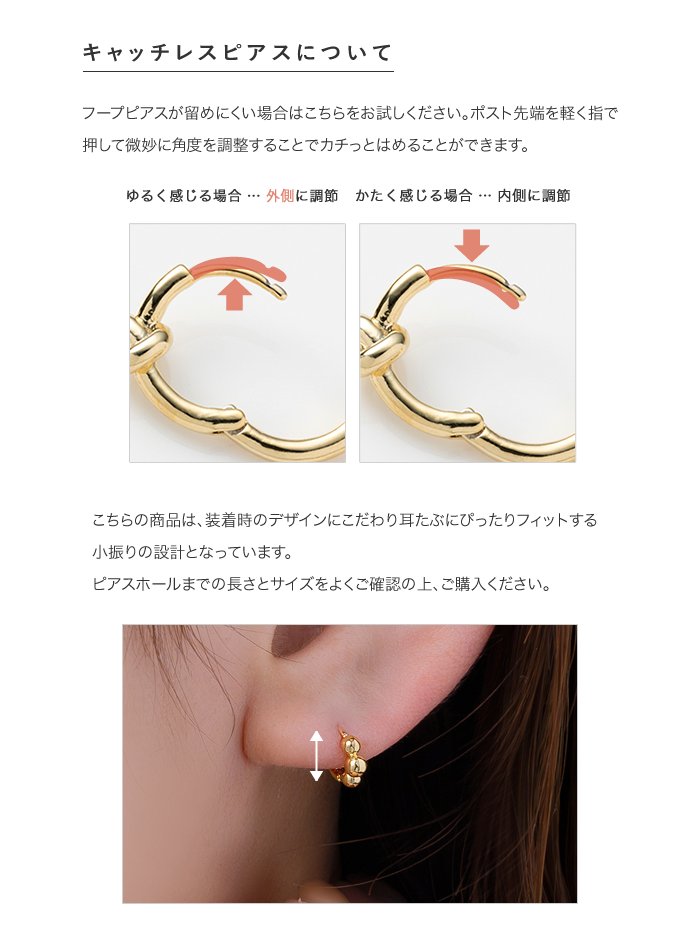 金属アレルギー対応 ピアス ニッケルフリー 18kコーティング フープ キャッチレス 中折れ 極小 メタルボール フィットピアス
