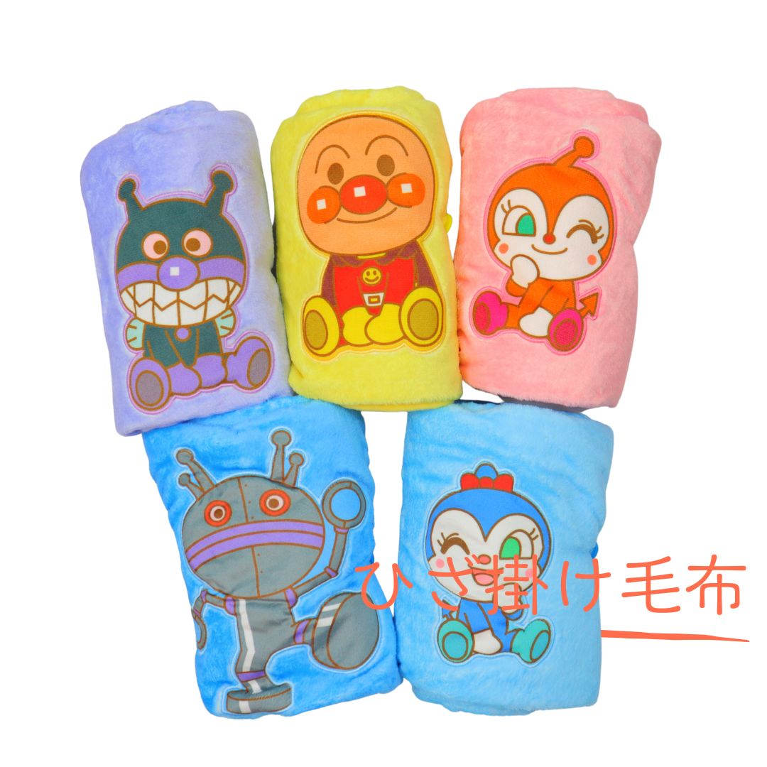 ふわふわの肌触りが心地いい、アンパンマンのコンパクトひざ掛け毛布です。