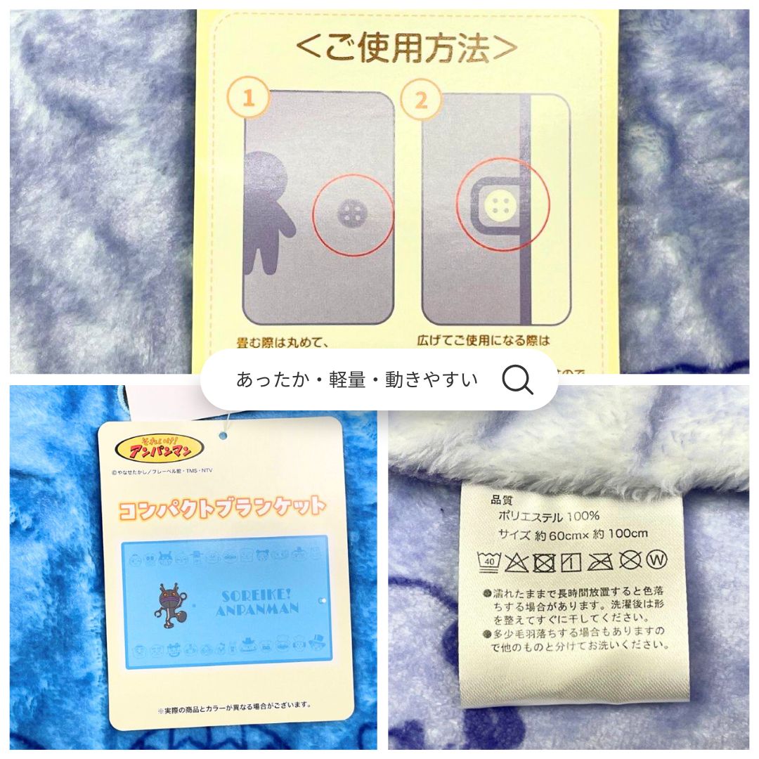 アンパンマン コンパクト ひざ掛け毛布 約60×100cm 毛布 ブランケット タオルケット あったか ふわふわ キッズ 子供用 保育園