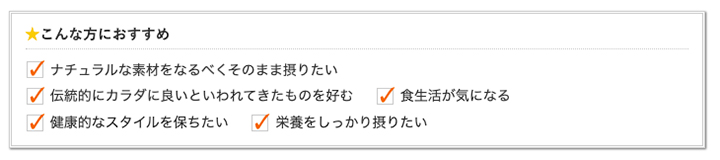 ※健康食品は食品なので、基本的にはいつお召し上がりいただいてもかまいません。食後にお召し上がりいただくと、消化・吸収されやすくなります。他におすすめのタイミングがあるものについては、上記商品詳細にてご案内しています。