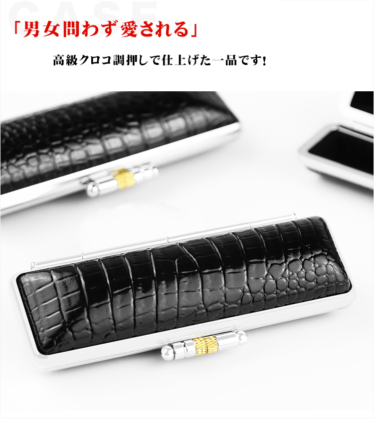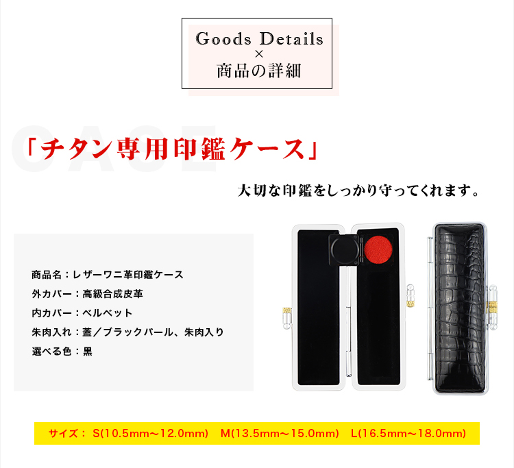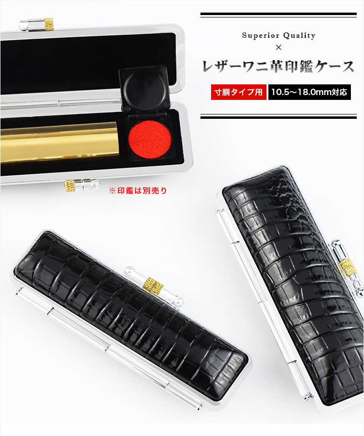 印鑑ケース 朱肉付 本牛革 印鑑入れ 個人印鑑ケース 個人10.5mm〜18.0mm用 はんこ ギフト 祝い プレゼント【レザーワニ革印鑑ケース(黒・G03)】
