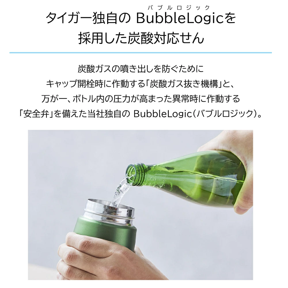 ◇炭酸ガスの噴き出しを防ぎ、開けやすい「ガス抜き構造」と内圧の高まりに対応する「安全弁」を備えたタイガー独自のBubbleLogic(バブルロジック)を採用。