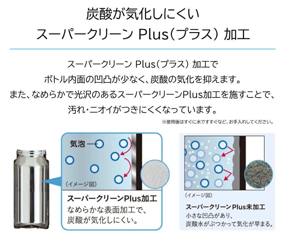 【 炭酸が長持ちする、スーパークリーンPlus加工 】