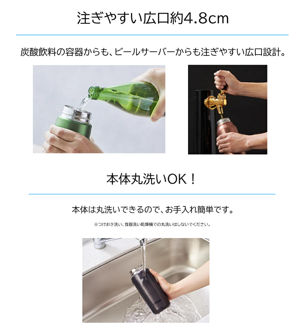 ◇噴き出しや飛び散りを防ぐことにより、冷たくてフレッシュな炭酸を持ち運びできるようになりました。