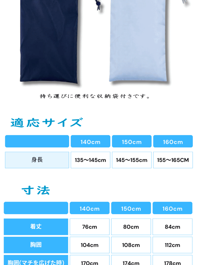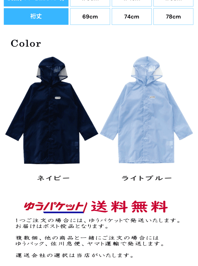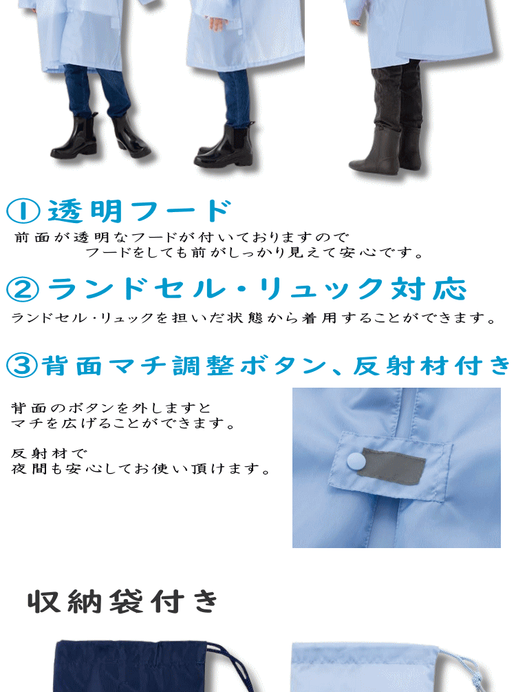 ゆうパケット送料無料 子供用 キッズ 軽量 コンパクト 携帯 撥水加工 収納ケース付き 反射素材 140cm 150cm 160cm ボタン留め フード付き