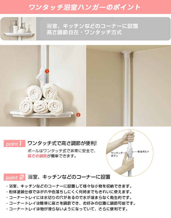 突っ張り ソープラック ハンガーラック 浴室用ハンガーシャワーラック ディスペンサースタンド バスラック コーナーラック 突っ張り バスカウンター