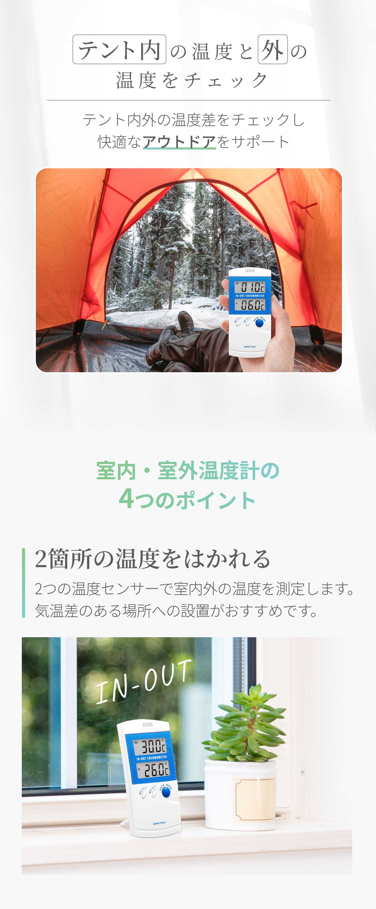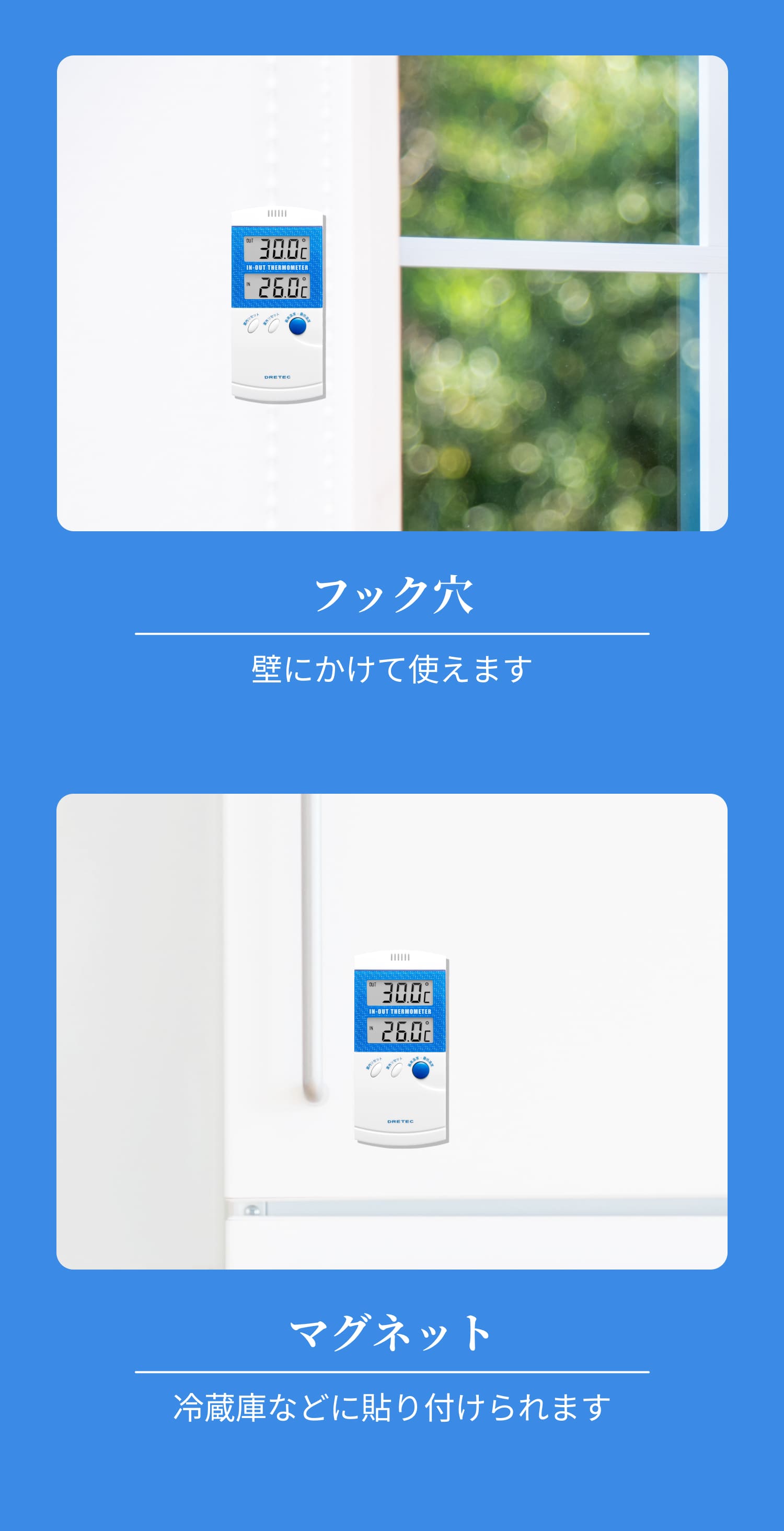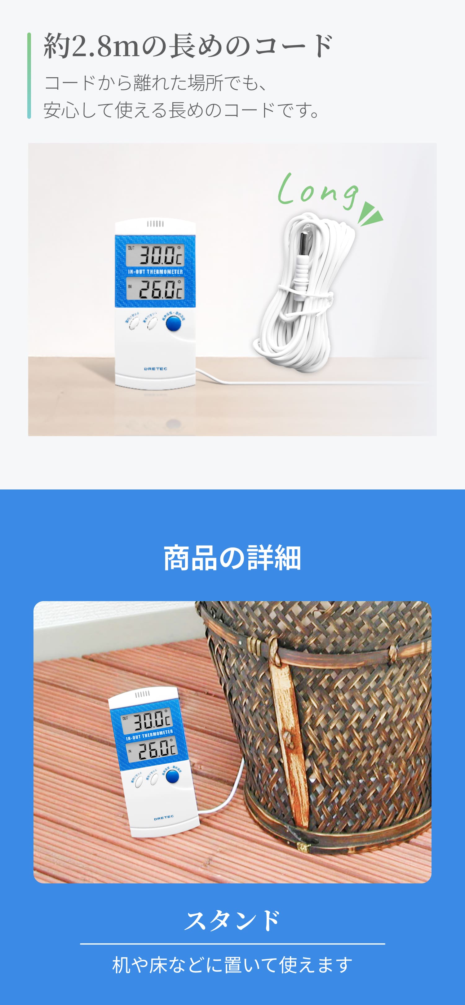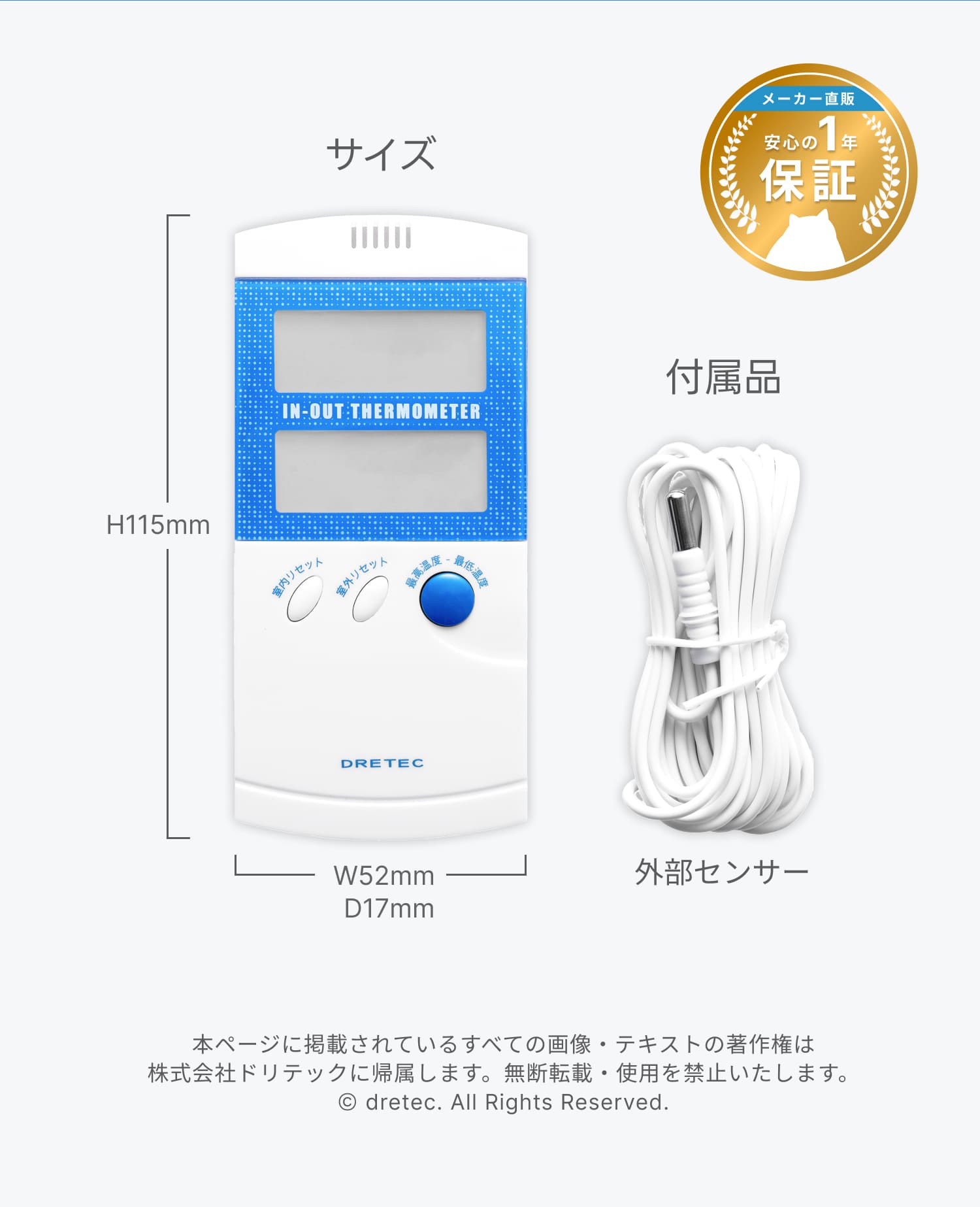 ドリテック 公式 温度計 2点測定 2箇所表示 外部センサー 冷蔵庫 温度管理 食品管理 水槽 水温計 植物用 観葉植物 ガーデニング 室内 室外 dertec O-209