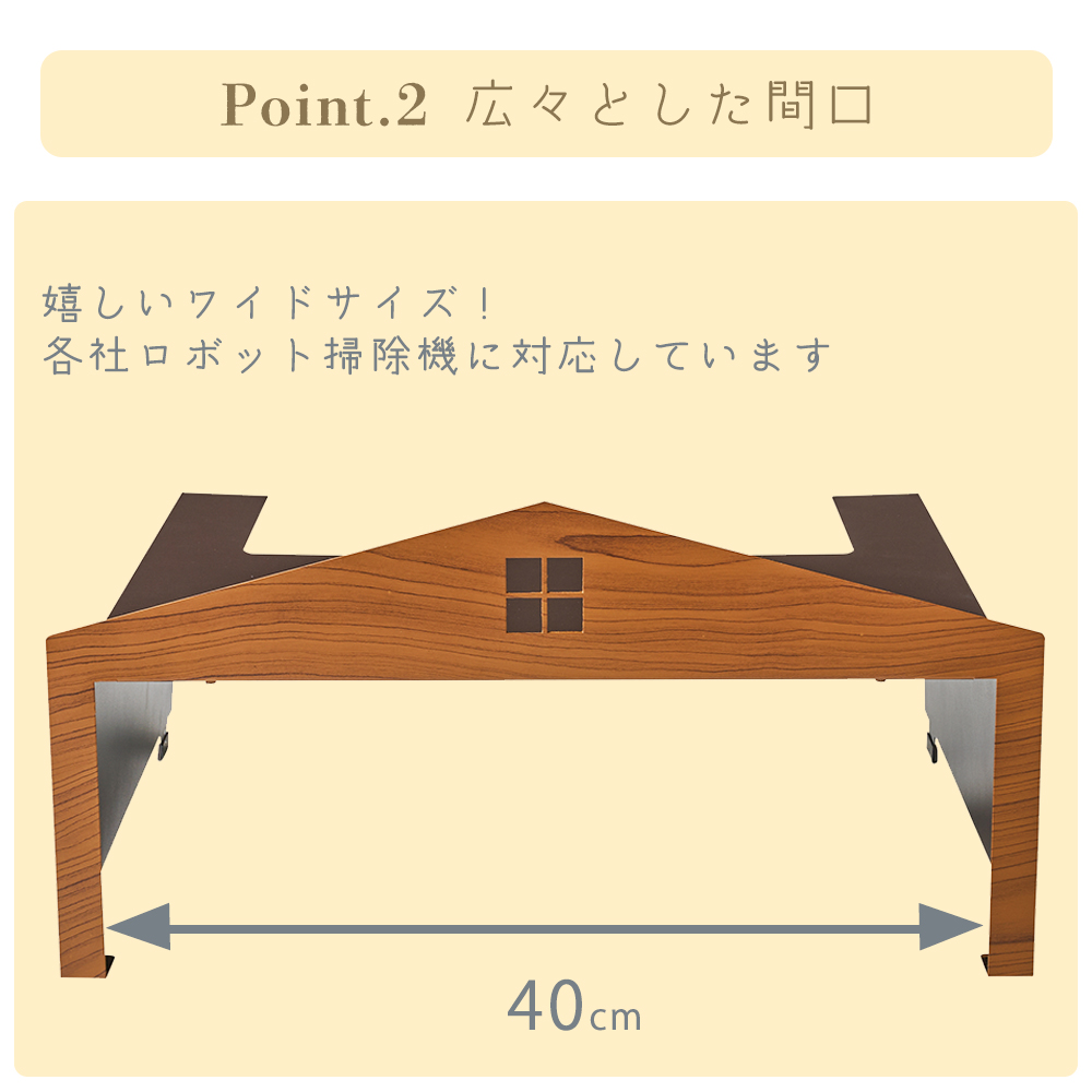 横幅40×奥行40×高さ13.5cmまでのロボット掃除機に対応しています。(充電器を含む)