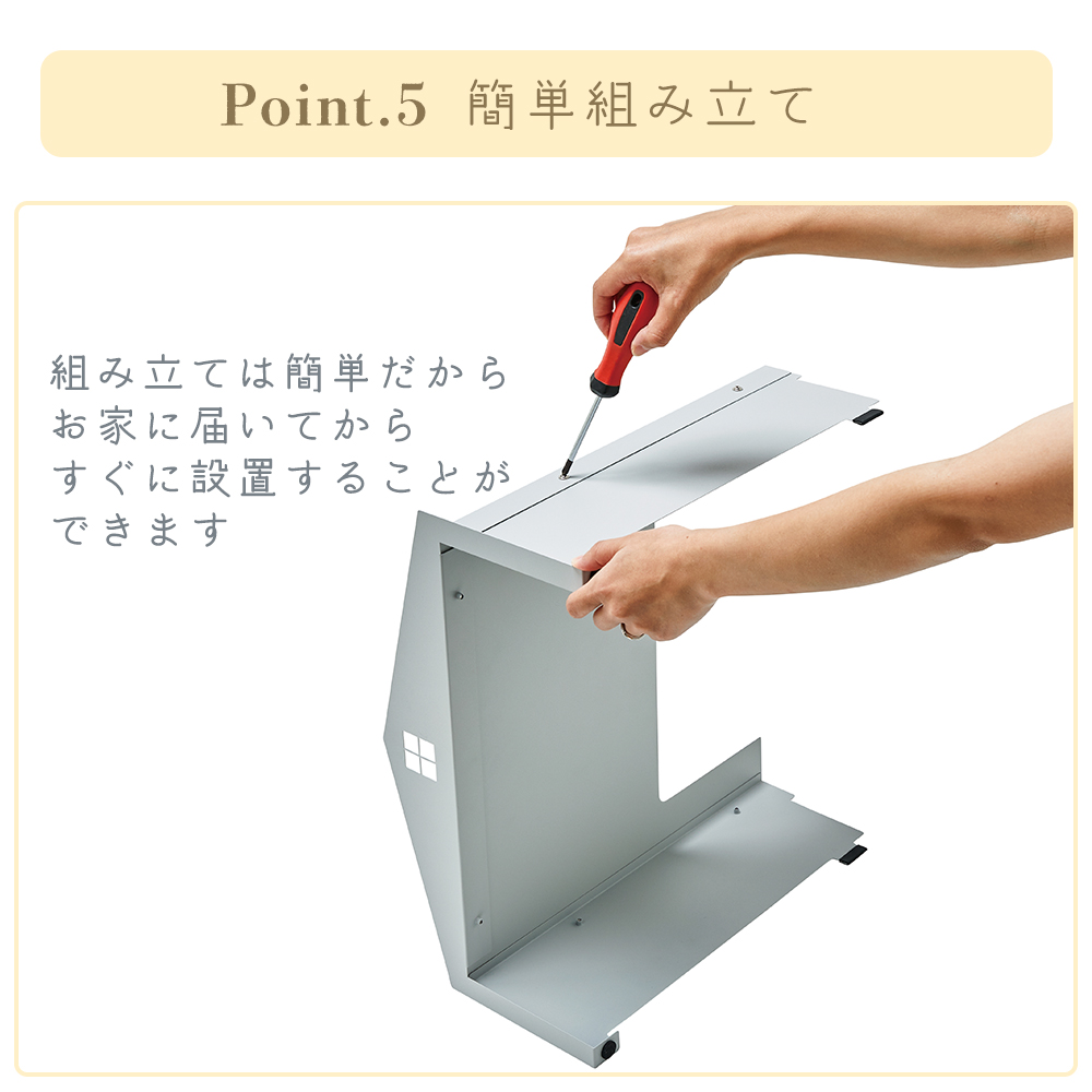 ドライバーでネジを取り付けるだけなので簡単に組み立てることができます。