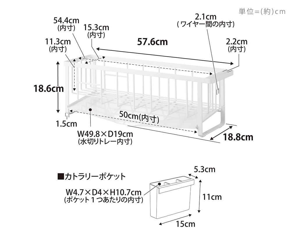 ワイヤーバスケット:約幅57.6×奥行18.8×高さ18.6cm