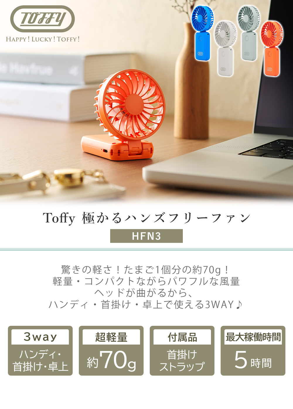3/8はP+17%還元! Toffy ハンディファン 軽い 軽量 ファン 手持ち 扇風機 ハンディ おしゃれ 角度調整 卓上 ハッピーコレクション トフィー ラドンナ LADONNA