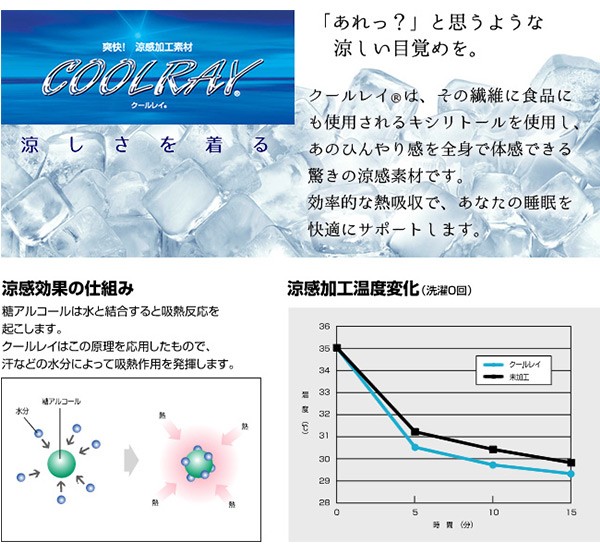 ●水分や汗と結びつくと吸熱作用を起こす、「キシリトール」の自然の原理を利用してひんやり効果を出す涼感敷きパッド