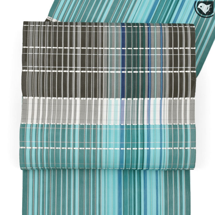 様々な線柄が表し、、お太鼓上部がシックな色みは