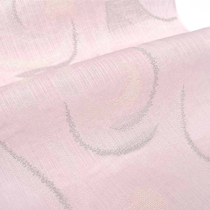 経糸は白糸で緯糸に薄っすらとしたピンク系