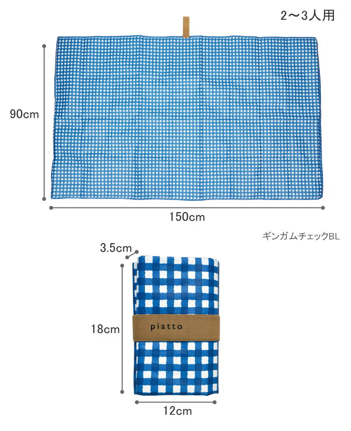 ●piatto レジャーシート 150×90cm(2〜3人用)ギンガムチェックBL