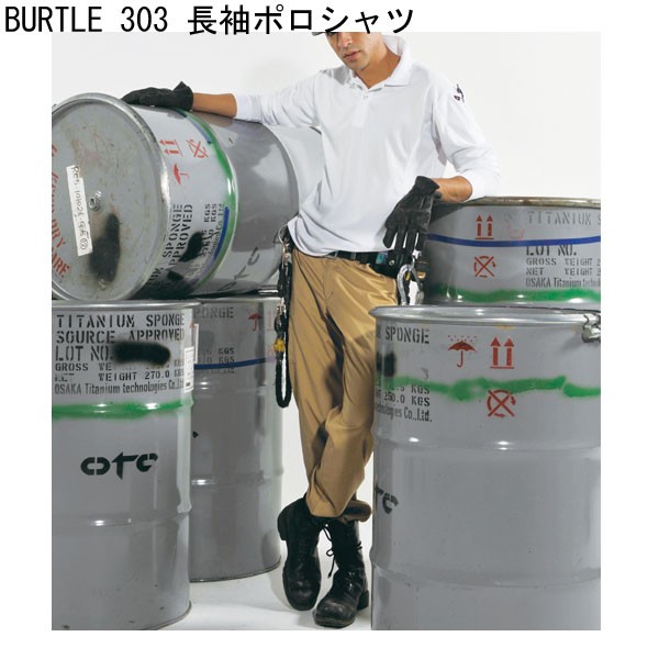 送料無料/メール便BURTLE バートル 303 袖ポケット 長袖 ポロシャツ 吸汗速乾 workbox 作業服 スポーツ 人気 3L100円/4L300円/5L500円アップ