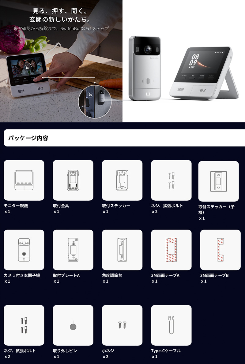 本製品内容は「SwitchBot ロックPro」のみとなり、それ以外の製品は別売です。