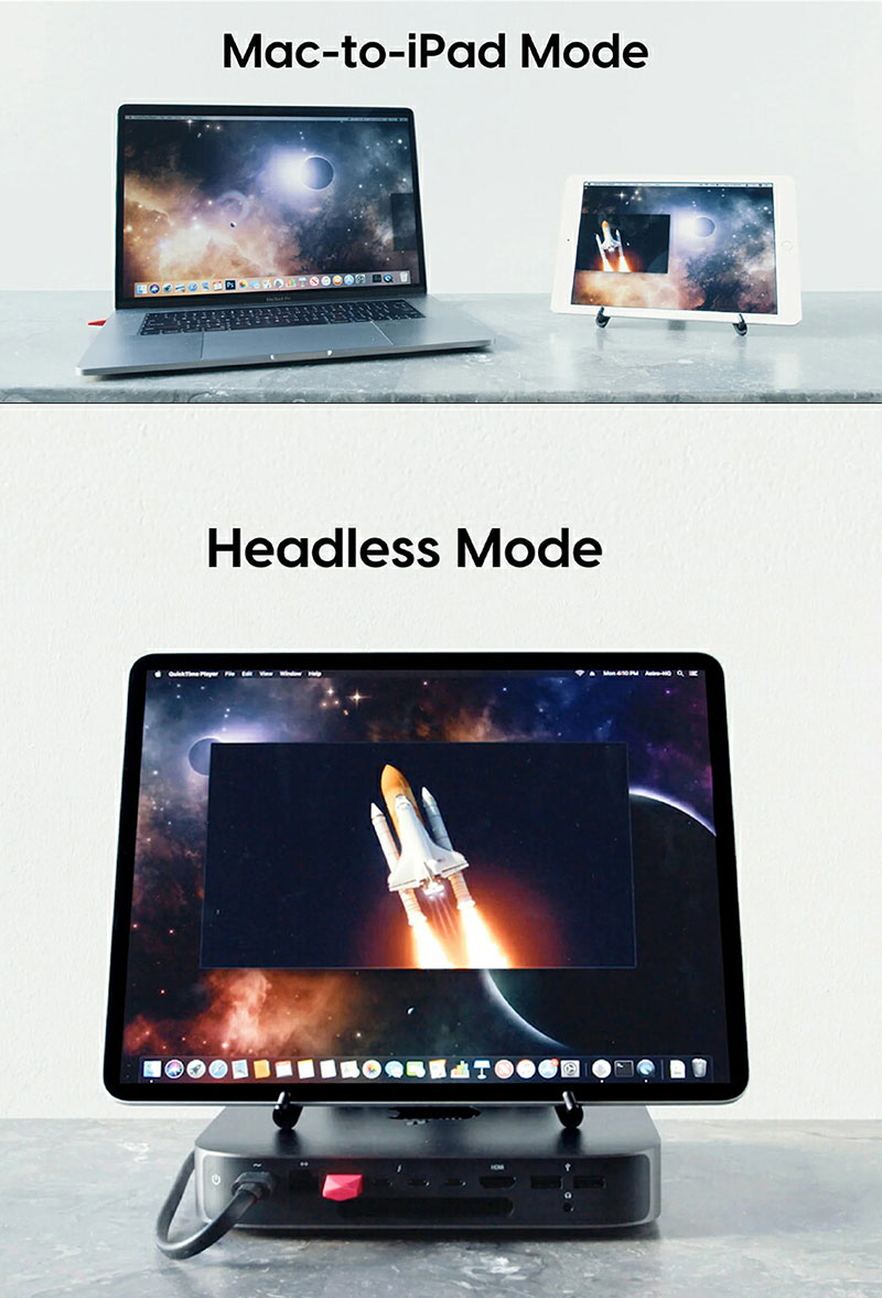 Lunaは、コンピュータ-iPadモード、コンピュータ-Macモード、ヘッドレスモードと、複数のモードで動作します。