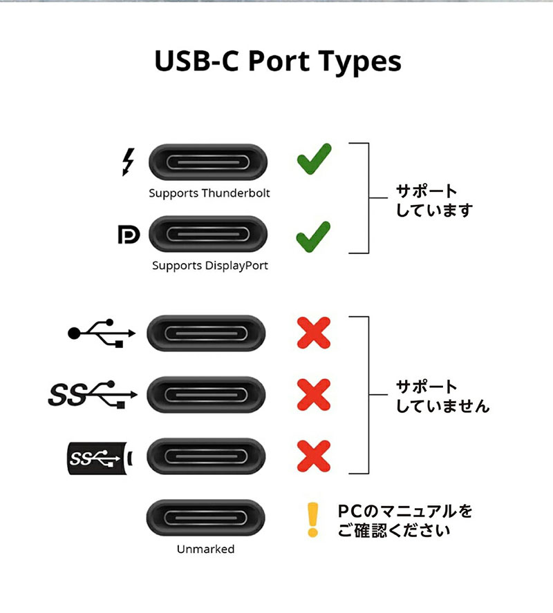 DP Altモードに対応したUSB Type-Cポートに差し込むことで利用できます。