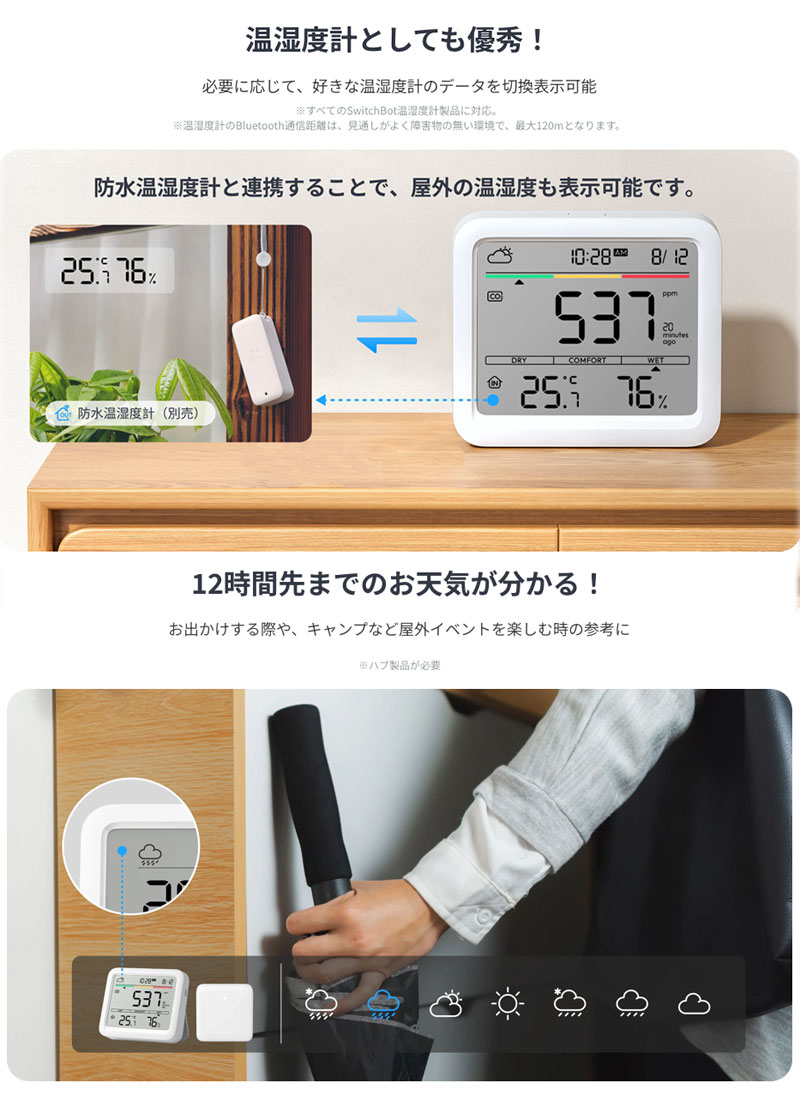 温湿度管理セット CO2センサー / ハブミニ HubMini Matter対応 / 防水温湿度計