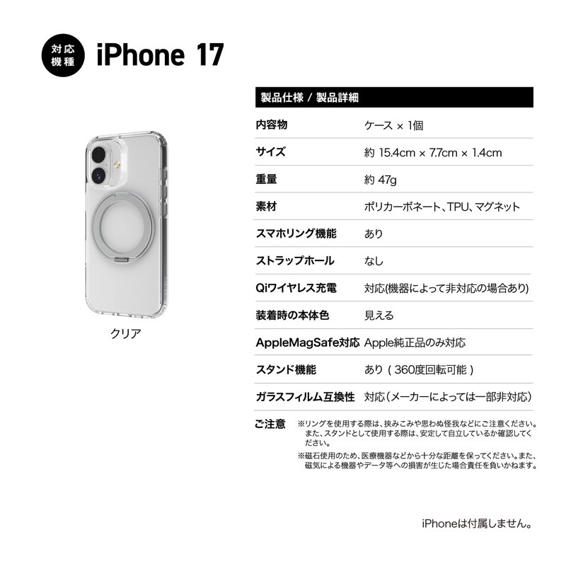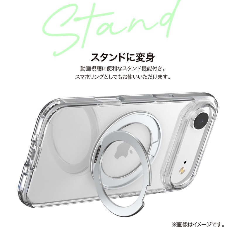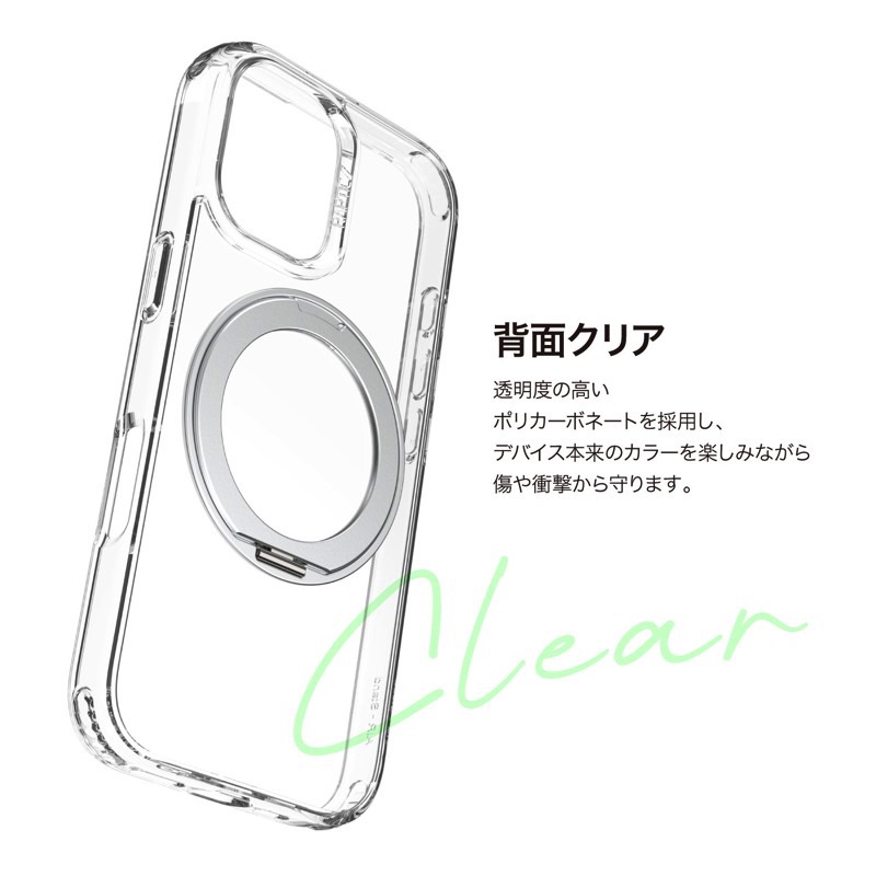 MagSafe対応、スタンドにもなるリング付きクリアケース