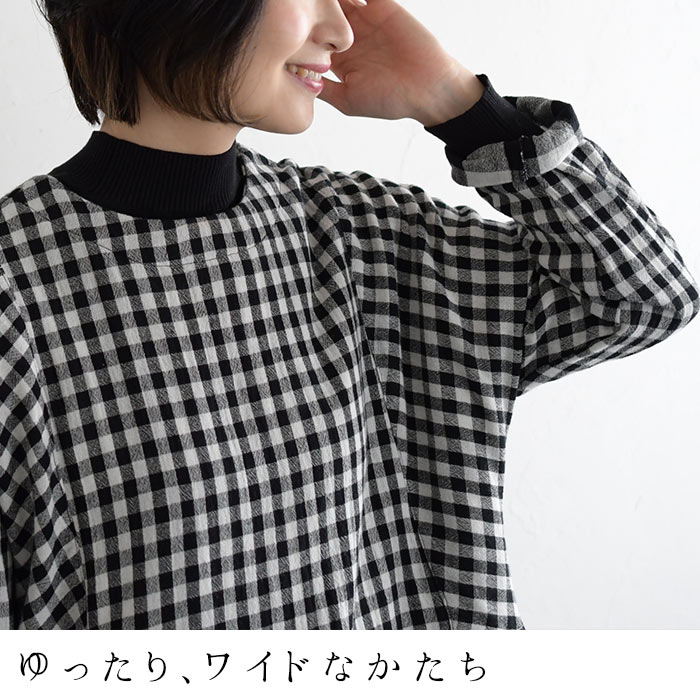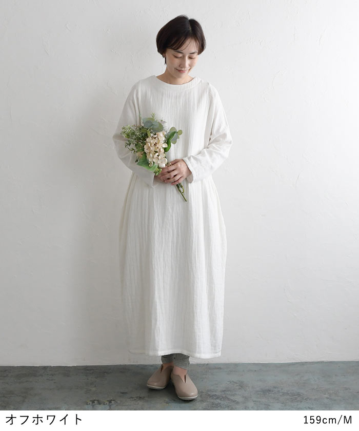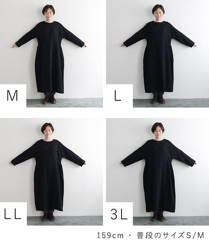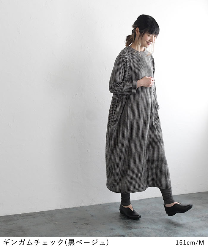 ダブルガーゼ ワンピース シンプルクルーワンピース ロング M〜3L /20番手 Wガーゼ 着後レビューでクーポン☆ 大人 ナチュラル ゆったり 大きいサイズ earth_eco_loco, e+ Ms,Ls,LL,3L, /オリジナル 綿 コットン 秋 冬 春 レディース 2220SS0128, 40代 50代 60代 楽 らく やさしい ブラック オフホワイト マスタード パープル ブロックチェック ギンガムチェック
