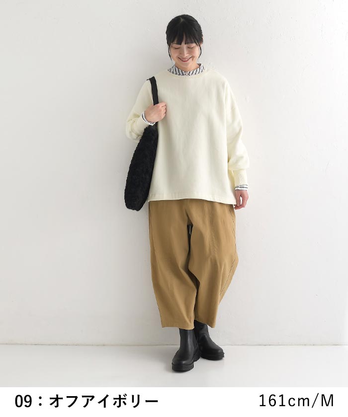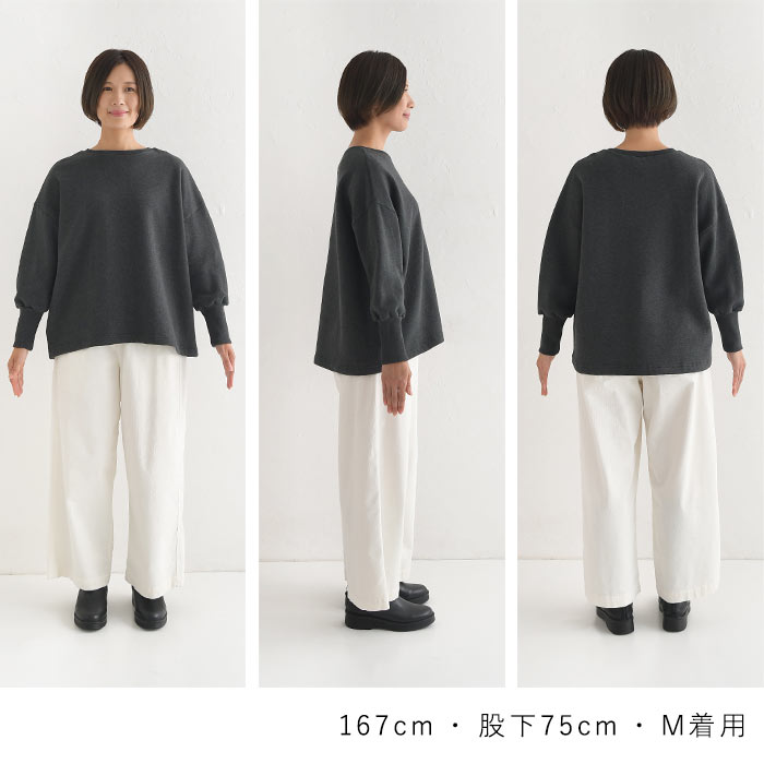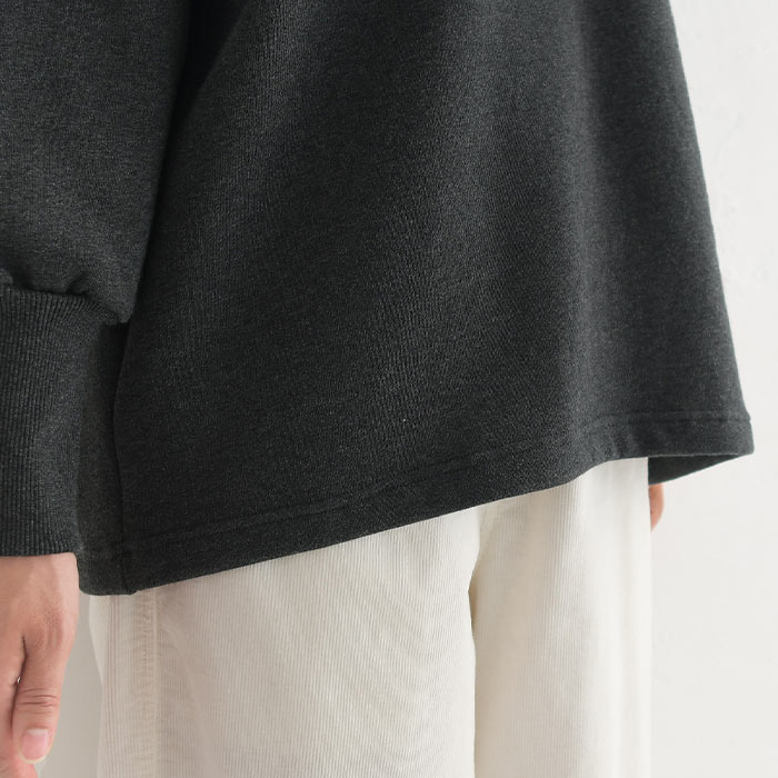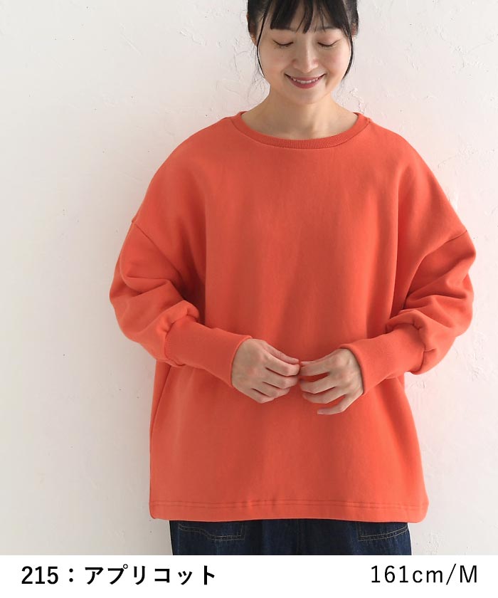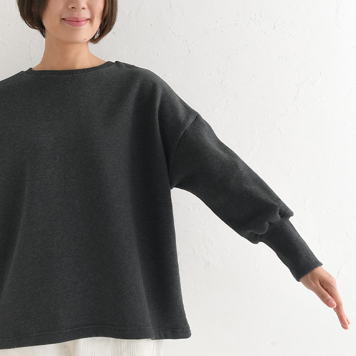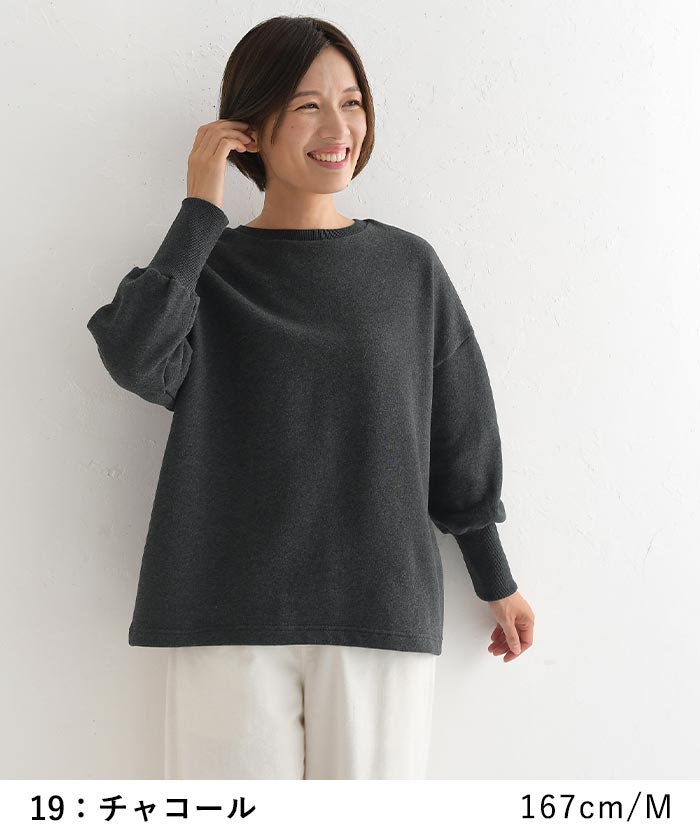 柔らか裏毛裏起毛ふわりリブ袖プルオーバー