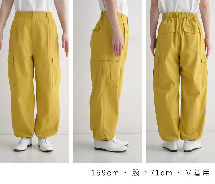 「多機能麻ライク」ゆったりカーゴ綺麗パンツ