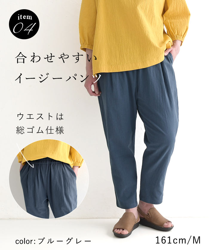 ウエストは総ゴム仕様で楽ちん。薄手の生地で軽い穿き心地です。