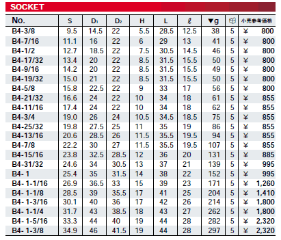 B4- 1-3/8 34.9 46 41.5 19 44 28 297 5 ¥2,320