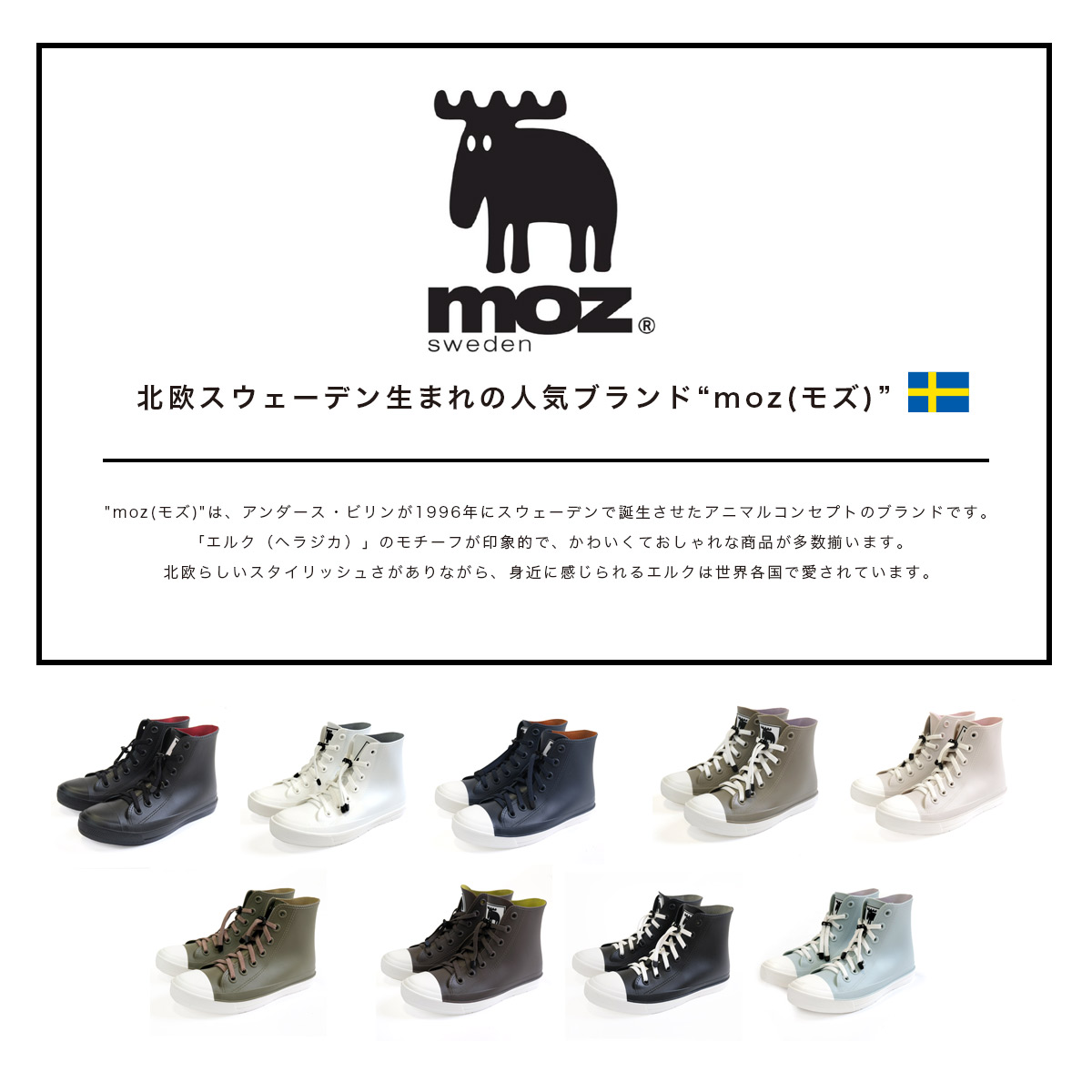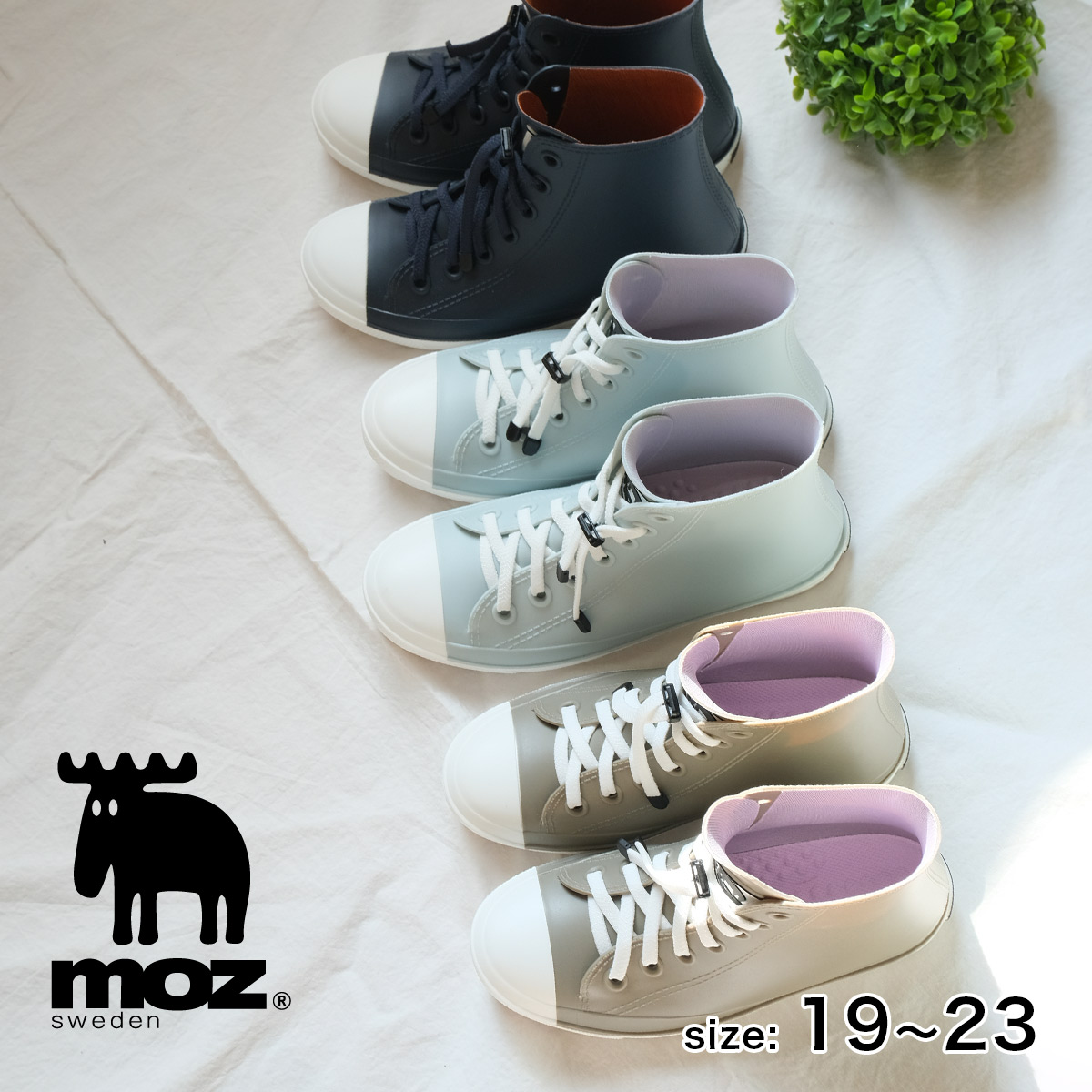 人気北欧ブランド「MOZ」モズのキッズ・ジュニアレインシューズ。スニーカーのようなデザインで見た目も可愛く歩きやすい。