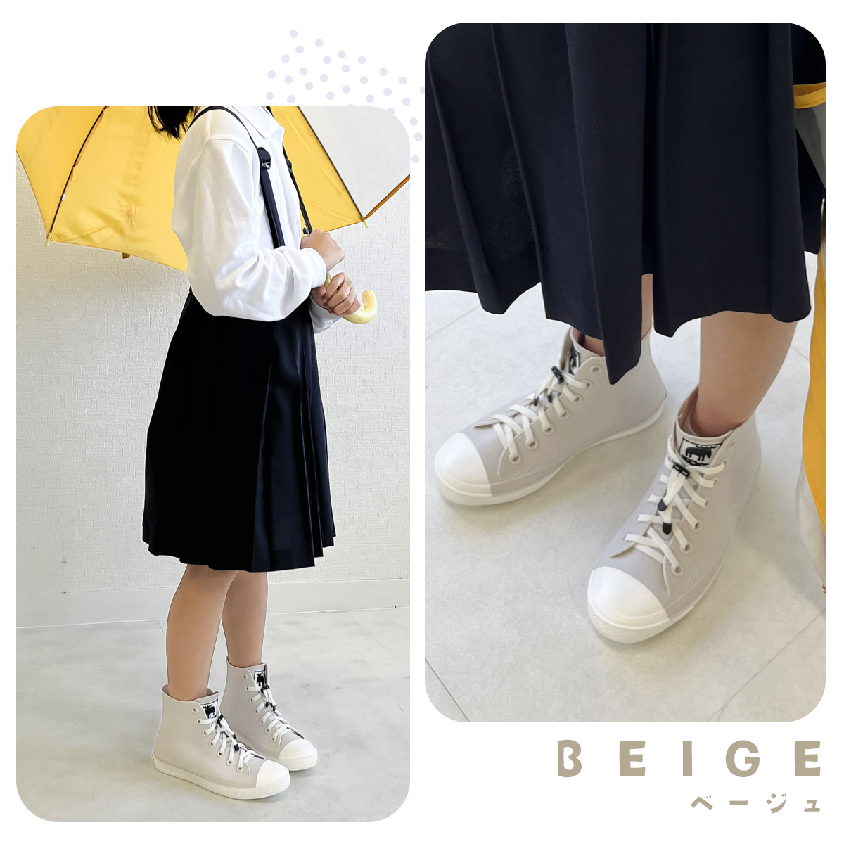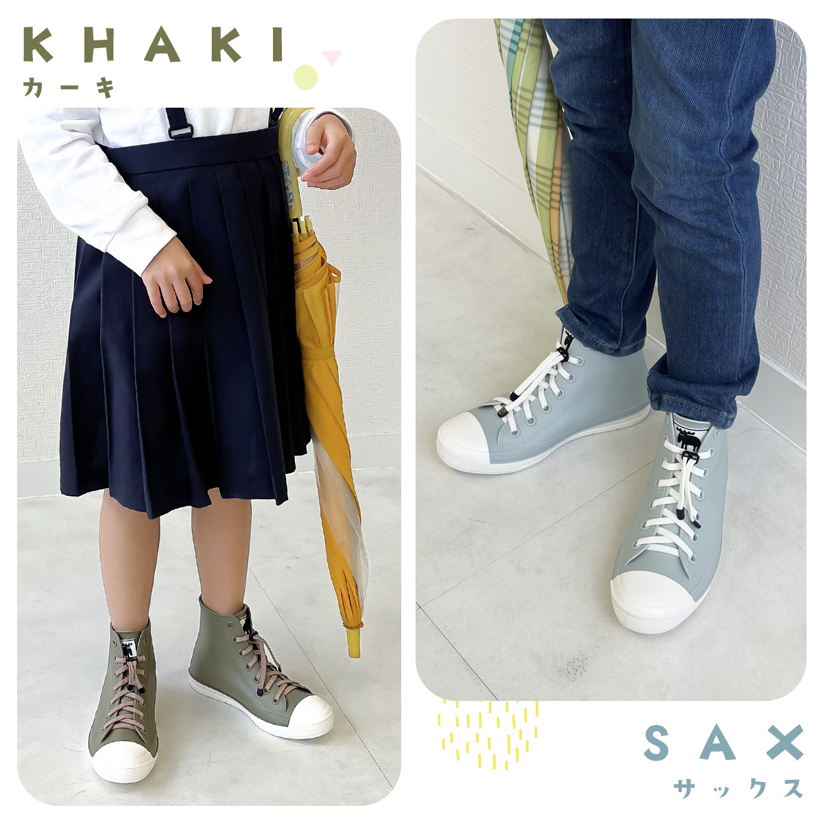 一体成型で水が浸み込まないから、雨の日も安心して履くことが出来ます。