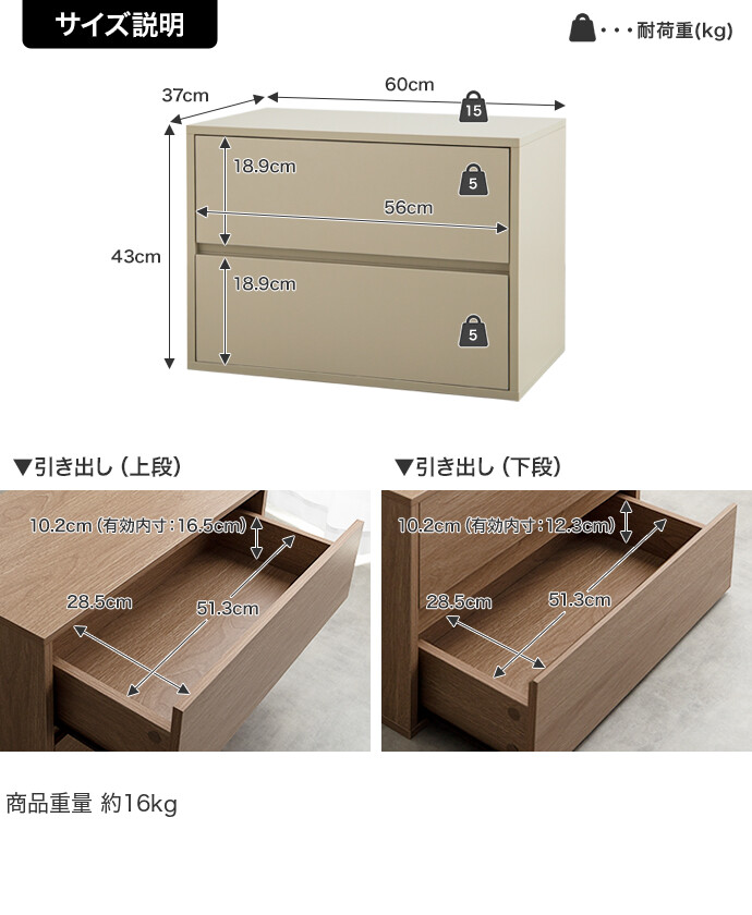 【耐荷重】天板:約15kg 、引き出し:各約5kg