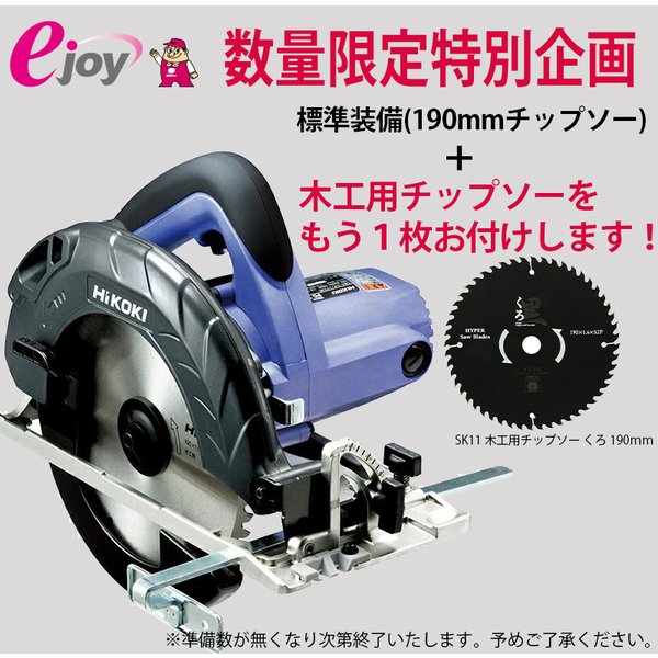 (数量限定 お得セット)HiKOKI ハイコーキ 電気丸のこ アルミベース FC7MA3 + SK11 くろ 木工チップソー 190X52P 4966376324309【GS】