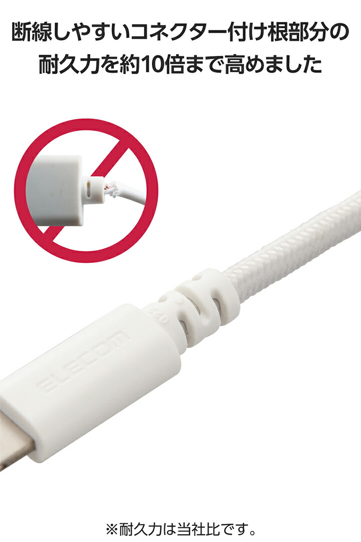 ●特に断線しやすいコネクター付け根部分の耐久力を約10倍まで高めています。 ※当社比。