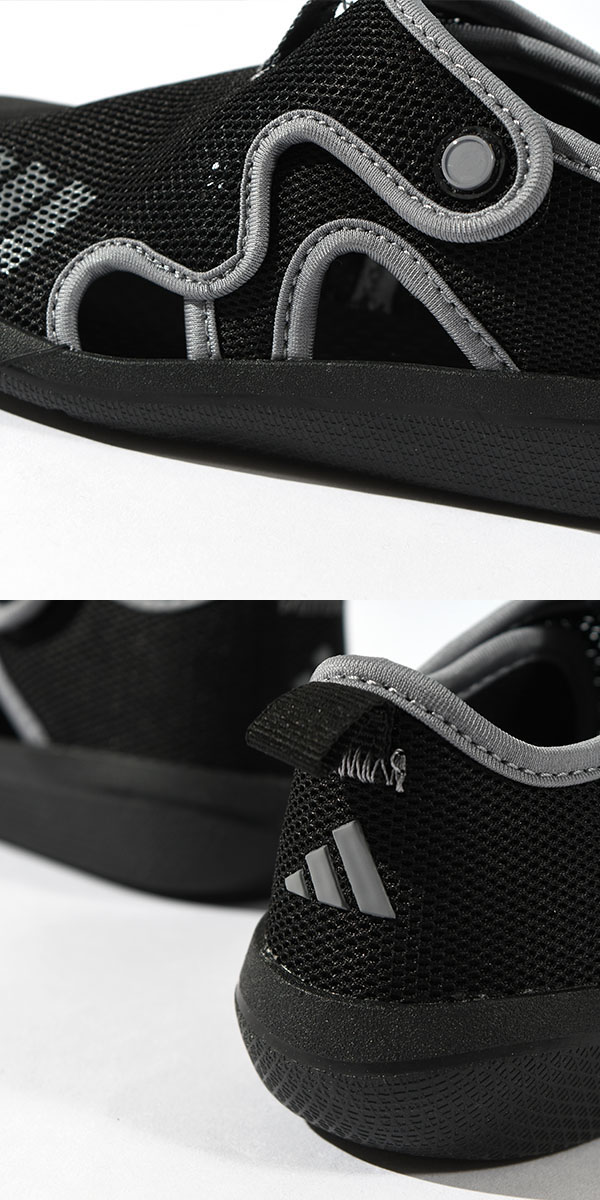 レギュラーフィット、面ファスナークロージャー、メッシュアッパー、速乾性、テキスタイルライニング、EVAクッショニング、つま先を保護するラバーカップソール