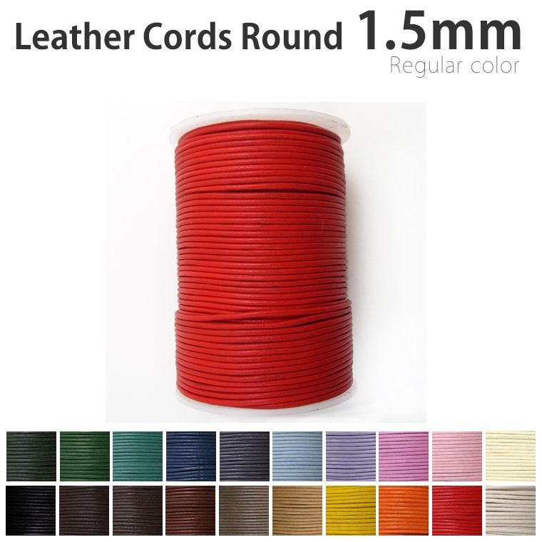 1.5mmの細身の丸革ひも。手作りアクセや小物作りに!