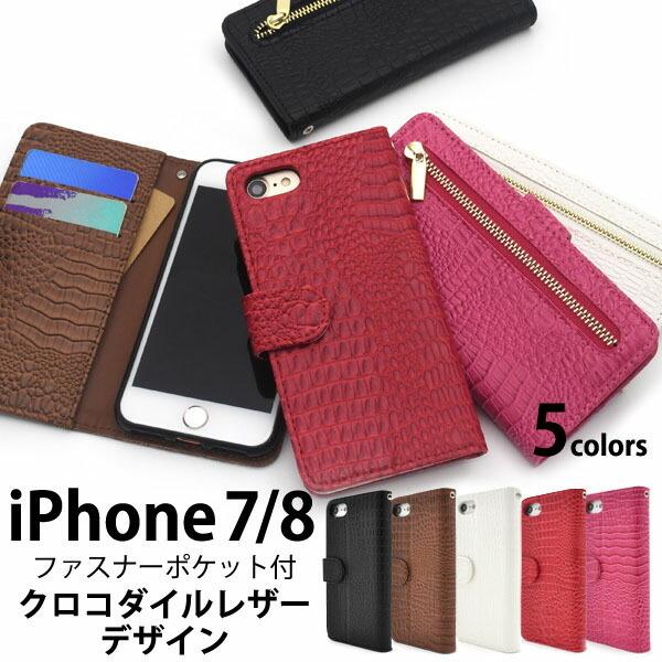 iPhone7/iPhone8用クロコダイルレザーデザインスタンドケースポーチ