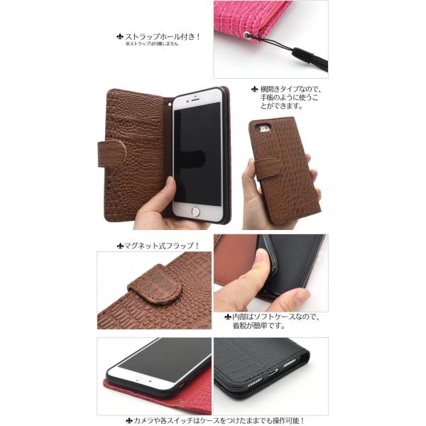 iPhone SE(第3世代)/iPhone SE(第2世代)/8/7/6/6s用クロコダイルレザーデザインスタンドケースポーチ