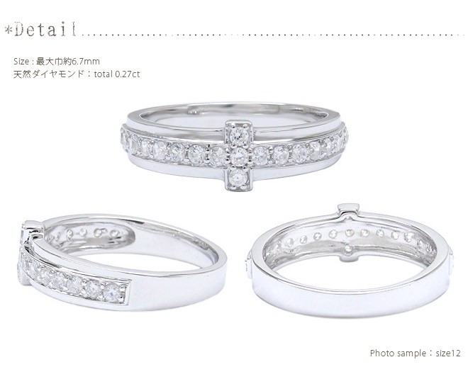 プラチナ900 pt900 ダイヤモンド リング 0.27ct クロス 十字架
