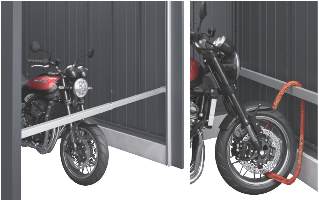 防盗バーや、車両と本体を連結できるワイヤーロックバーなど、防犯性をさらに高めるオプションを