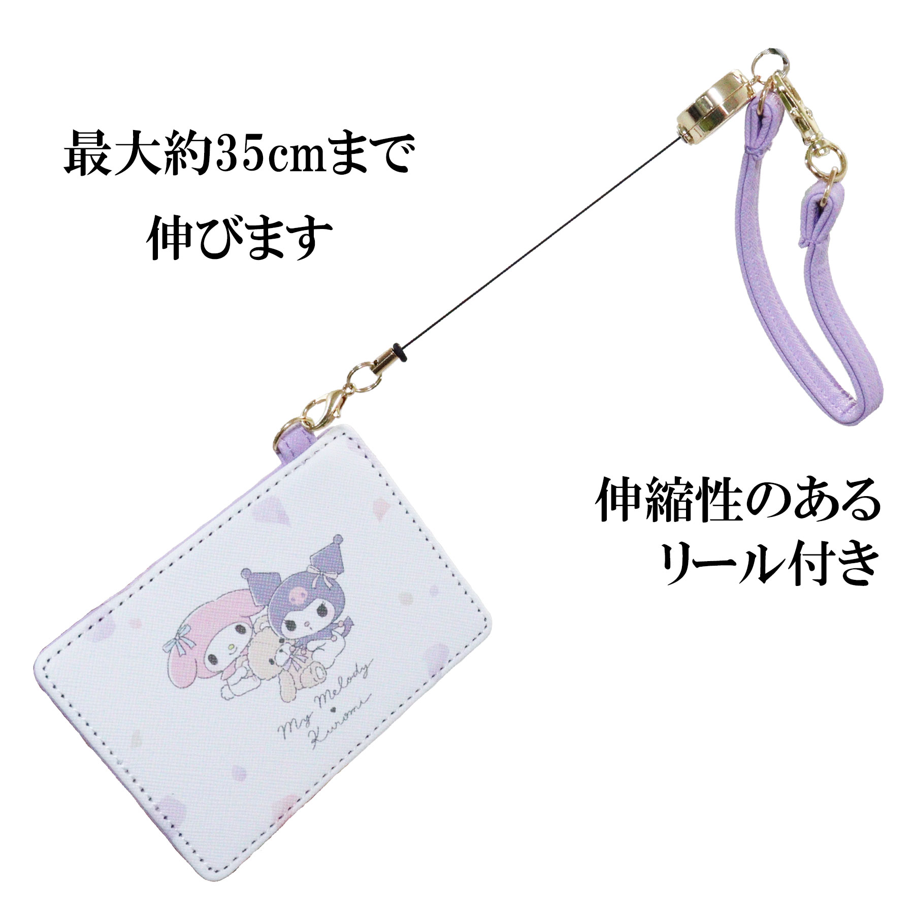 サンリオキャラクターズ マイメロディー マイメロ クロミ パスケース 定期入れ カードケース リール付きストラップ Sanrio ピンク メール便対応 全国送料無料